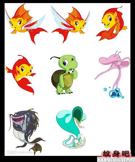 可爱金鱼卡通纹身图片