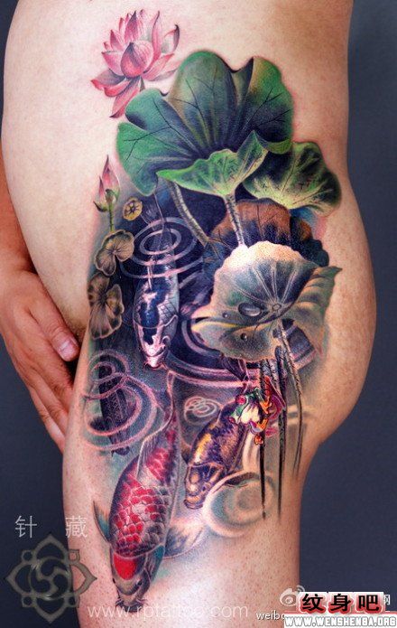美女臀部花卉蝴蝶藤蔓纹身图案