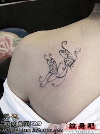 美女肩上图腾蝴蝶纹身图片
