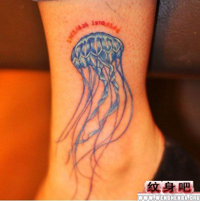 女人水母脚部纹身图案