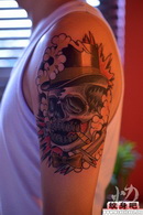 女生可爱图腾蝴蝶结骷髅纹身图案