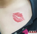美女胸部彩色唇印纹身作品